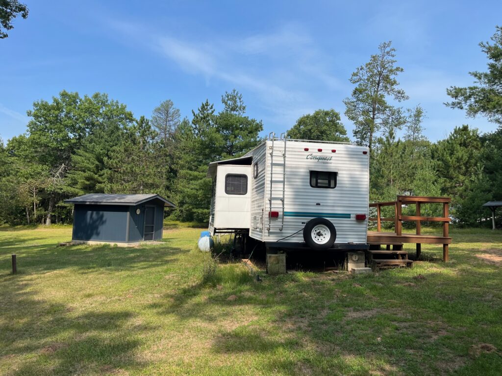 6.61 Acres within a mile to Lake Petenwell,….Wisconsin’s 2nd largest body of water, ideal for all types of watersports! Located at 664 & 668 Meadow Lane, a very nice quiet area just off County Rd Z short drive to Sand Valley Golf Course, Lake Arrowhead, Lake Camelot & Sherwood. Ideal recreational area!! This features your very own private Campground with rustic country driveway through the entire property, comes in 2 parcels for two building sites, rolling wooded acreage with new underground electric, 200 AMP Service in to one of the parcels with Well, Septic, 10x 15′ & 10×12 Storage Buildings, 5th Wheel Camper all set up with well & Septic & electric,plus another parcel with 16 x 20′ Garage with underground 100 AMP electrical all the way back to the campsites, plus a well & Huge Fire Pit, Awesome privy,Storage building & Gazebo. This is a awesome parcel, sold as one piece, great hunting on your own property with Deer & Turkey roaming around, great fishing& boating just down the road, awesome property…….New Price $159,900.00